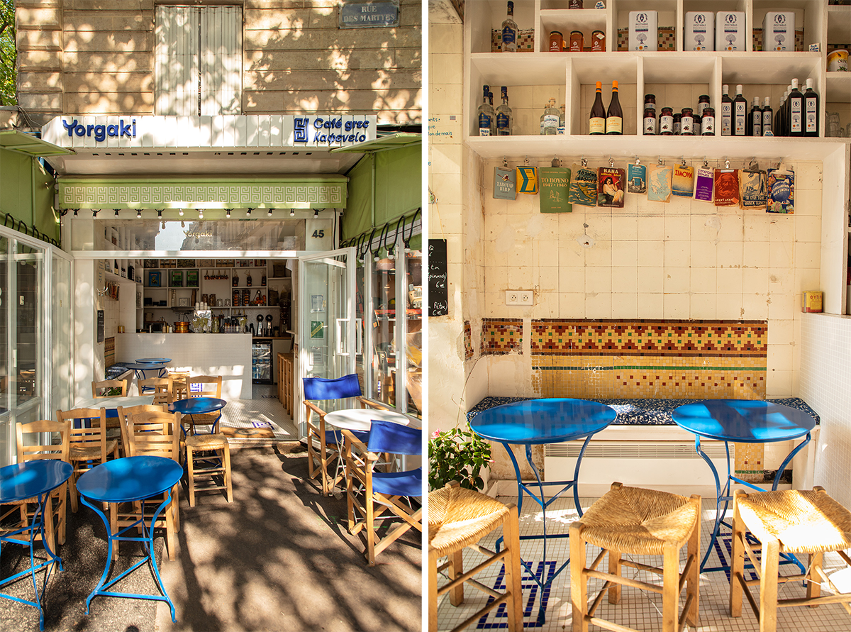 パリ9区のマルティール通りの小さなグリーク・カフェYorgaki(ヨルガキ)は、坂道にあるので微妙に傾いているにも関わらずテラス席はいつも満員だ。これから夏に向けて、ギリシャで人気のフラッペ・カフェがここでも味わえるのでますますの人気となるだろう。ヨルガキを2019年に開いたのはアート・ディレクターとして世界的に活躍し、またパリの有名なアートスクールのペニンゲンでロゴの授業の教鞭を執るギリシャ人のヨルゴ・トルパスだ。故国ならどこにでもある「カフェネイオン(小さなカフェ)」がパリになかったことから、パリジャンたちにギリシャのアールドゥヴィーヴル(Art de Vivre)を!と思い立ったことからだという。