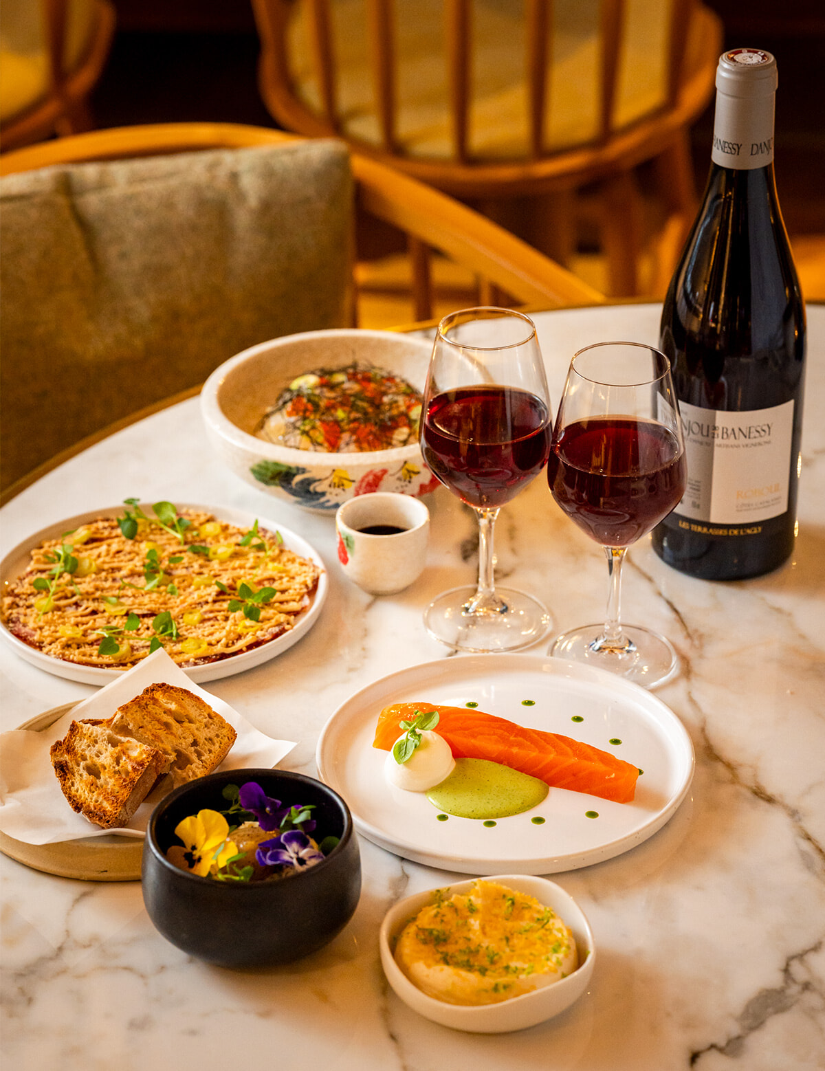 2015年にフレンチレストラン、ターブル・デュ・オンズをオープンしたジャン=バティスト・ラヴィーニュ=モラザーニ。17年にはビストロを、19年にこのカーヴをオープンした。ラインナップは、95%がフランスワインで、ビオやビオディナミも含め約250種。店内では抜栓料10ユーロで味わえるほか、週替わりで8種のグラスワインを提案。厳選の食材をソースやトッピングでドレスアップしたタパスも、ガストロノミーシェフのアドレスならでは。シアターやオペラに出かける前のアペロに訪れるカップルも。