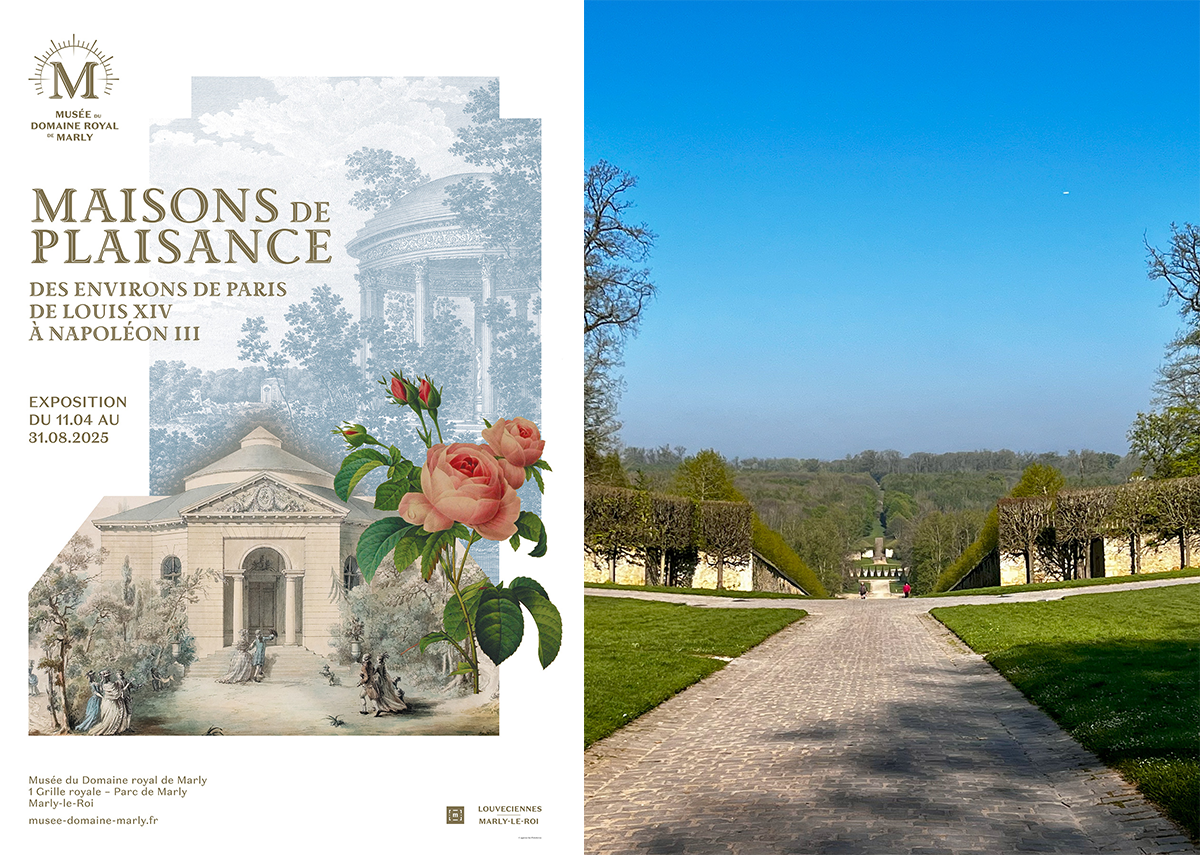 ルイ14世からナポレオン3世までのパリ近郊のレジャーハウスをテーマにした展覧会。会場となる美術館はマルリー領地の入り口にあり、領地内の庭の散策も楽しめる。photography: 右 Mariko Omura