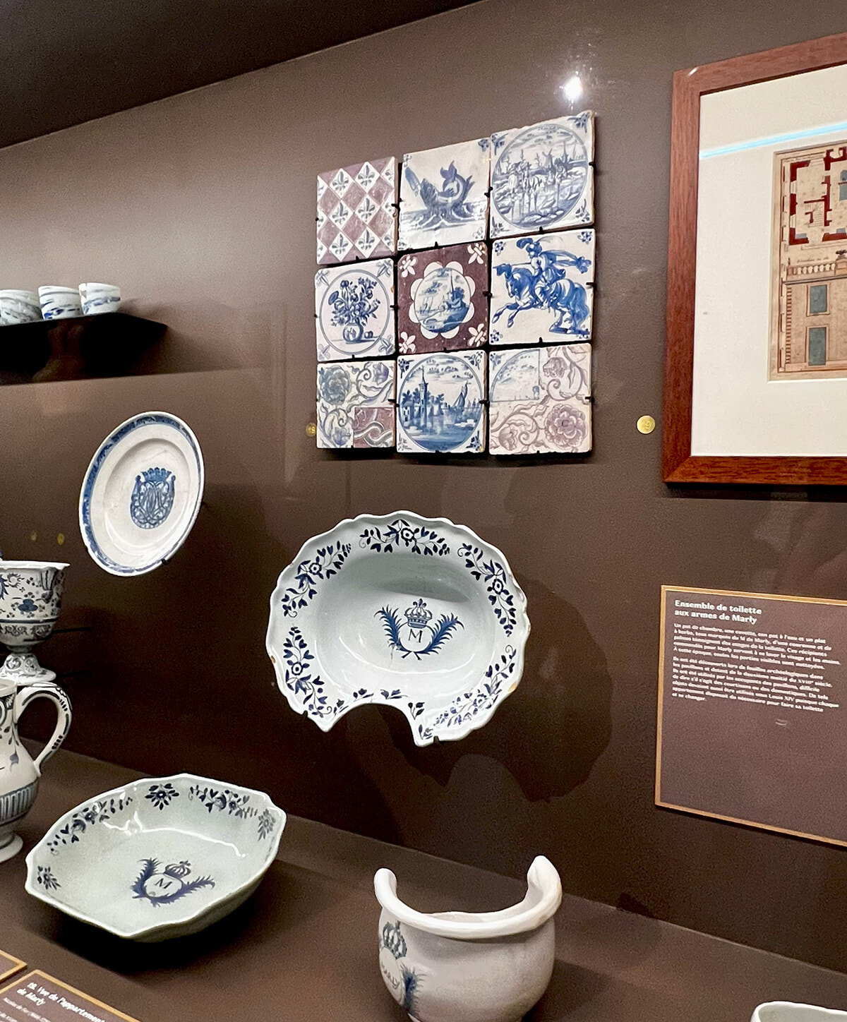 マルリー城で使われていた陶器類はヴェルサイユ宮殿から運ばず、ここでの暮らしのために特別に製造。その中には身繕い用の水差しや洗面器、お丸なども含まれていた。photography: Mariko Omura