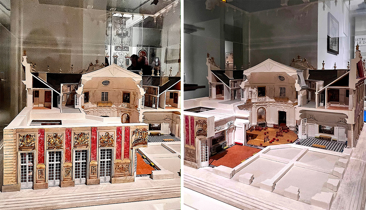 1715年ごろのマルリーのパビリオンをミニサイズの模型で再現。中央に2フロアからなる8角形のサロンが設けられていたのがわかる。上のバルコニーで音楽家が演奏し、人々は食事や舞踏を楽しんでいたのだ。photography: Mariko Omura