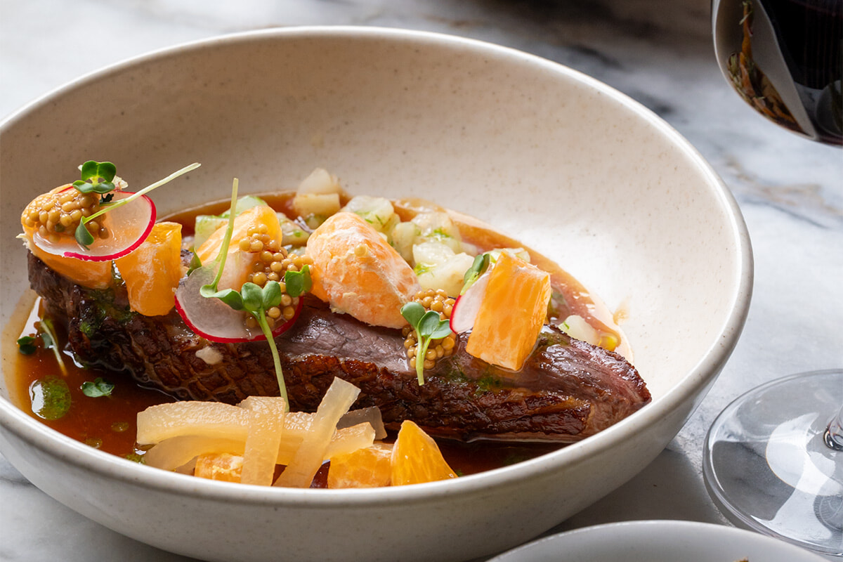 シャトーの南側、旧市街の小道にあるヴーは、ヴェルサイユのモダンな顔をのぞかせるフレンチレストラン。ふたりの幼なじみが生まれ故郷に帰って立ち上げた店は、ヴィンテージ家具に囲まれた居心地のいい雰囲気で、年代もさまざまな地元客が集まってくる。伝統フレンチの典型的なメニューを、野菜のピクルスやマスタードシードでいまどきの軽やかな表情に仕立てた料理は、2カ月ごとに内容が変化。>>Read More