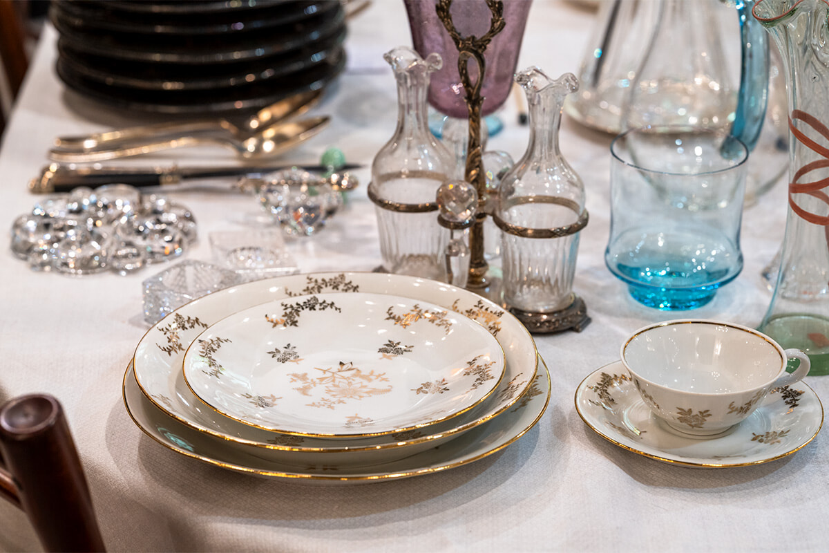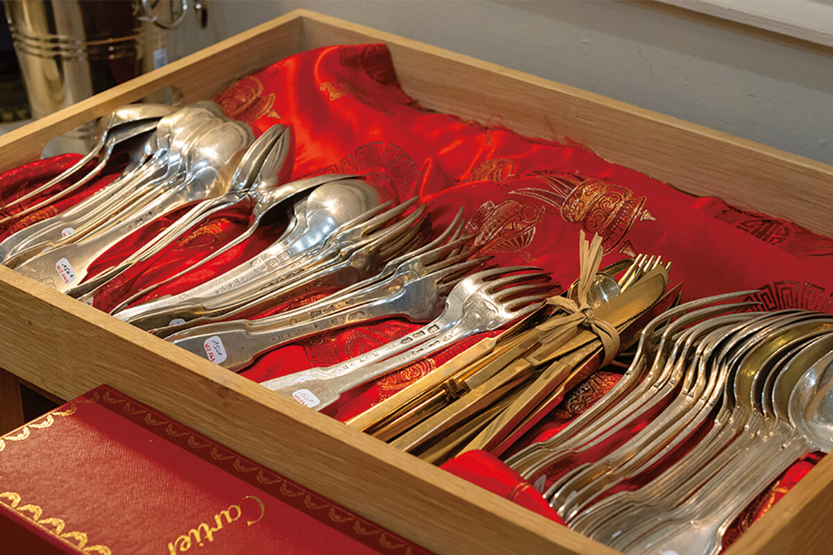 中央にレストランのある四角い広場を店舗がぐるりと囲むアンティーク村。その一角にあるのが、銀器とクリスタルを扱うギャルリー・トゥルマリーヌ。カトラリーやプレートなど、ワンランク上の食卓を演出するアイテムが集められている。広場の反対側のアーケード入口で、同じオーナーが経営するジュエリー店もお見逃しなく。>>Read More