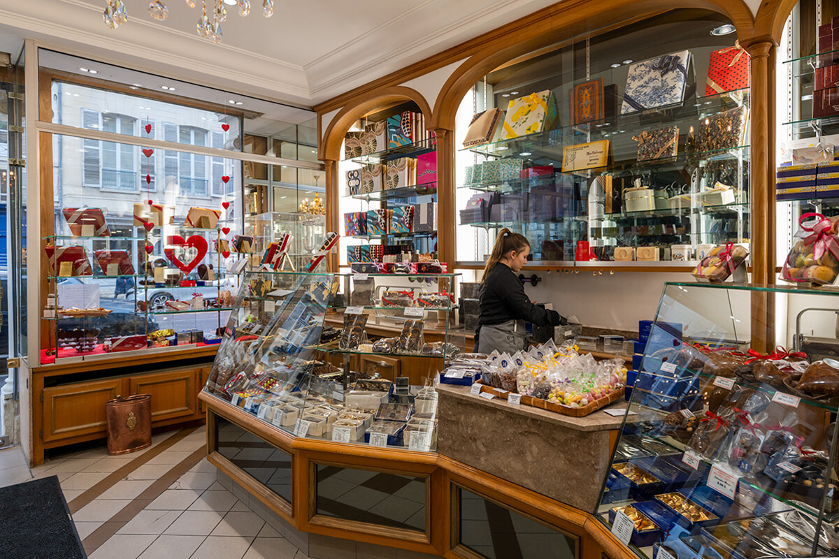 1912年にサロン・ド・テ&ショコラティエとして誕生したオ・コロンヌ。78年に店を買い取ってチョコレート作りに専念した父の跡を、現ショコラティエのステファン・メリエンヌが5年ほど前に引き継いだ。プラリネやアーモンドペースト入りのボンボンショコラ、トリノ産の最高の栗を使ったマロングラッセも人気だ。>>Read More