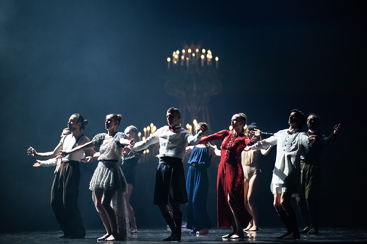 コスチュームはもちろんのこと、赤い幕、シャンデリア、照明が作り上げるイメージも60分間の見どころだ。photography: Julien Benhamou / OnP