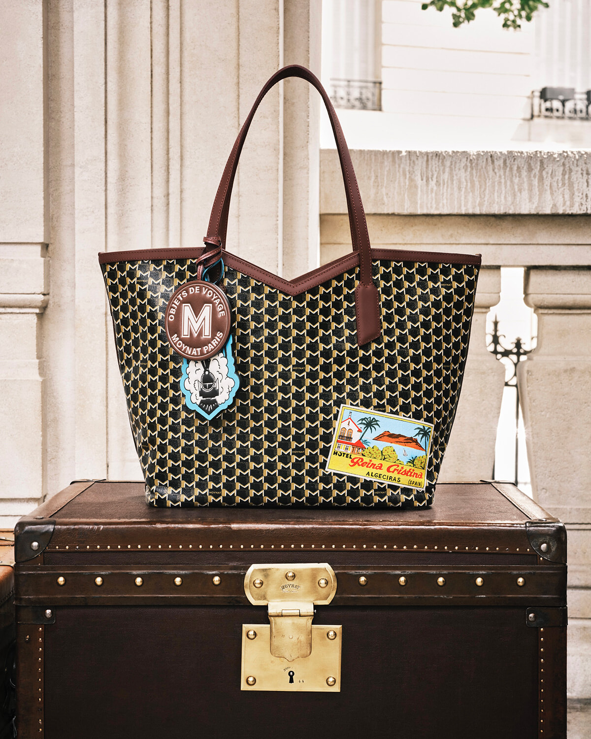 モンテーニュ通りといえば、パリ8区の中心に位置し、時代を超越したエレガンスと文化的重要性で知られる歴史的なアドレス。それを象徴する「34 M ブティック」の限定アイテムとして、「Mコレクション」のトートバッグよりエクスクルーシブなカプセルコレクションが登場。モワナのシグネチャーであるブラウンカラーのキャンバスに、アーカイブのトランクから着想を得たコントラストのあるバッグの輪郭は、メゾンのヘリテージへのオマージュとなっている。