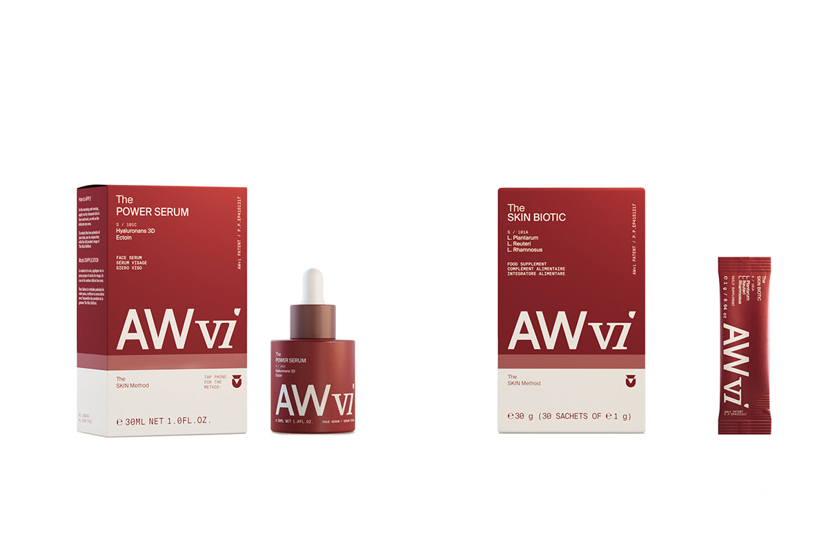 イタリア生まれのユニセックスブランドAWVIの4種から。左はThe Pozer Serum(146ユーロ/30ml)、右はThe Skin Biotic(64ユーロ/30スティック)。