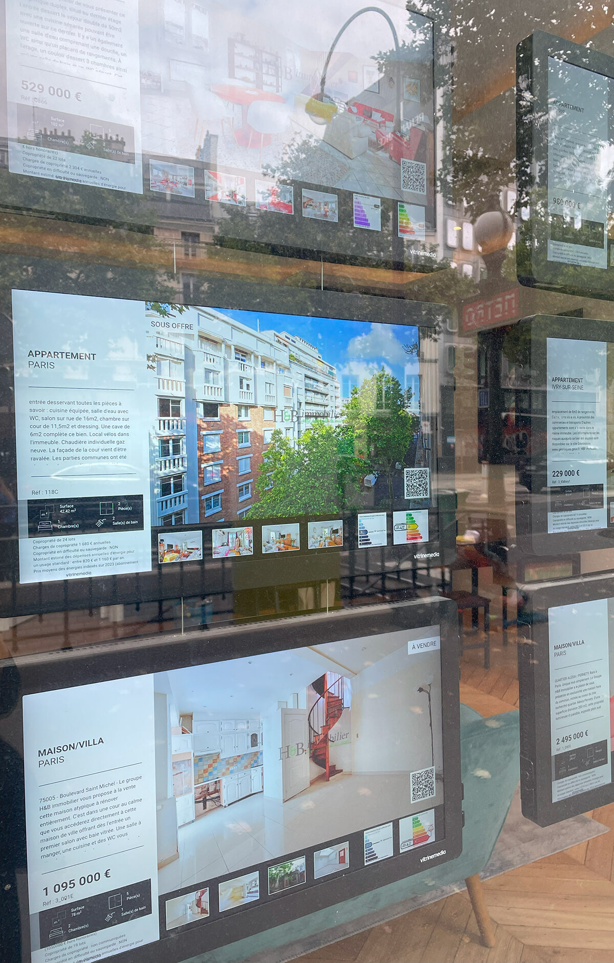 パリ3区の不動産店のウィンドーにも「売ります」の情報だけで、賃貸物件の店頭POPは一切ない。