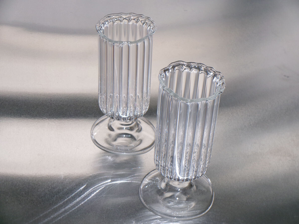 彼女のグラスは理化学器具などに用いられるホウケイ酸ガラス。衝撃に強く軽い。