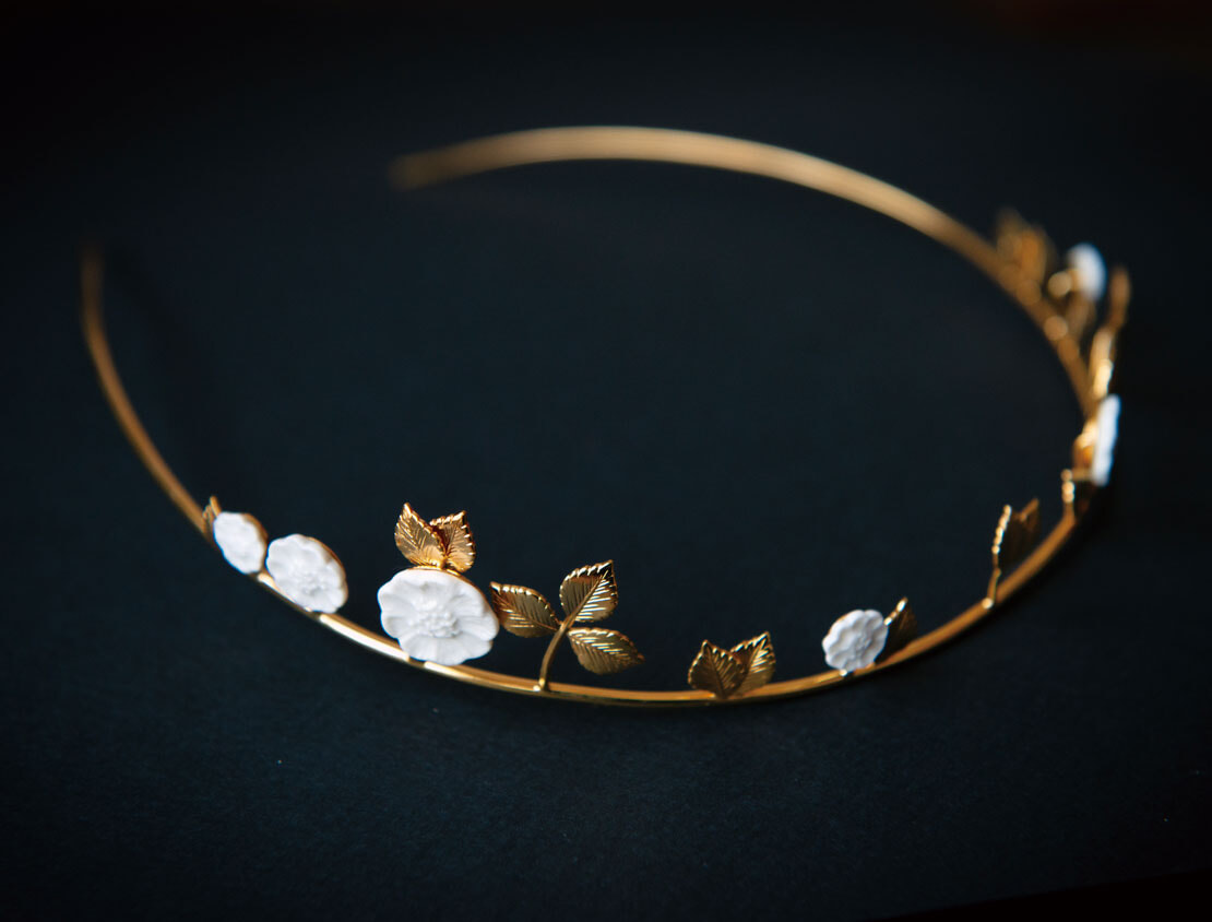 ウェディングのためのティアラは、個人オーダーから生まれた作品。彼女のオンラインショップのみで扱う。480ユーロ