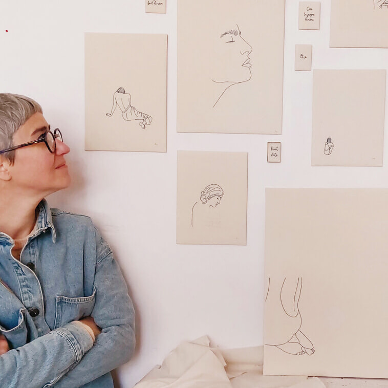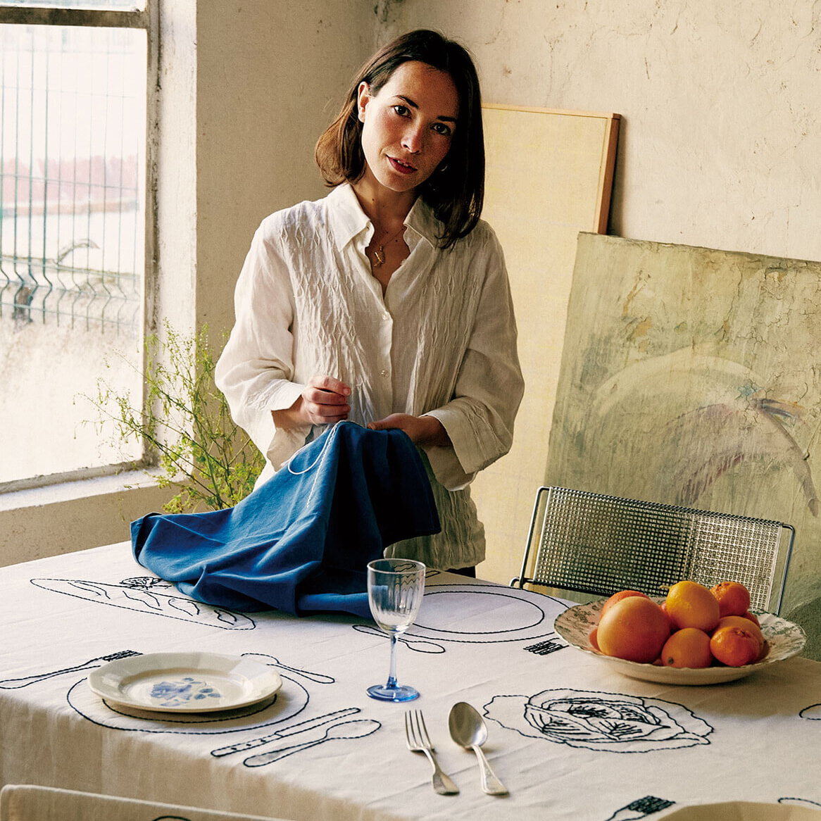 白い長方形の布の片隅に小さく縫い取られた女性の後ろ姿や、描きかけのようなポートレート。「まず自分を愛して」「あなたは特別」の言葉。オード・エラールの作品には、見る者の心に小さな灯りをともすような温かさがある。>>See More