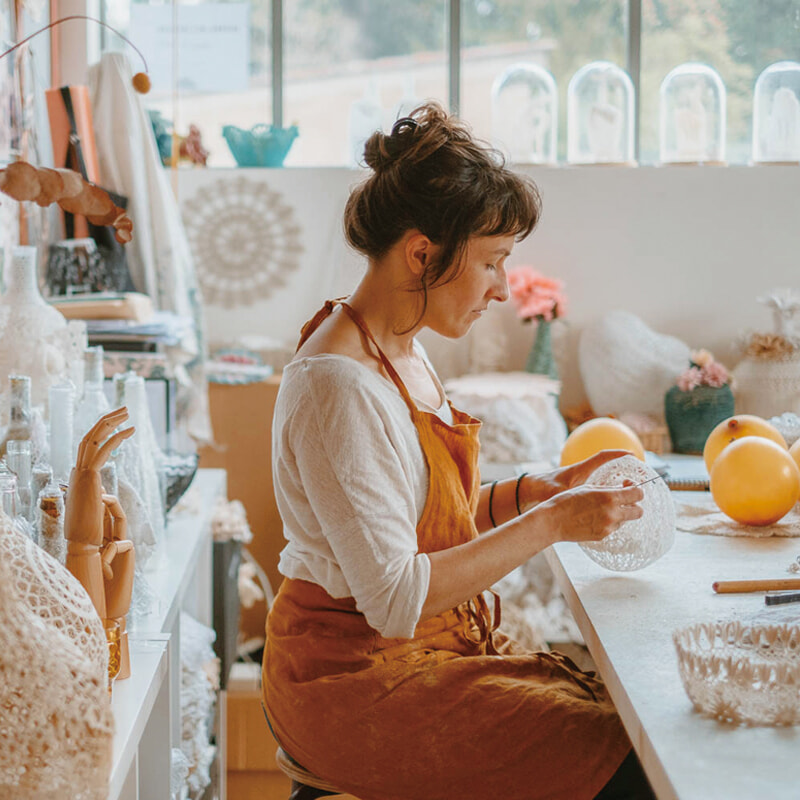 テキスタイルデザイナーだったヴェロニク・ダマールが自分自身のプロジェクトを立ち上げたのは2011年のこと。祖母が趣味で作っていたレース編みのナプキンを糊付けの手法でボウル形に成形し、結婚式や洗礼式用に提案したのが始まりだった。>>See More