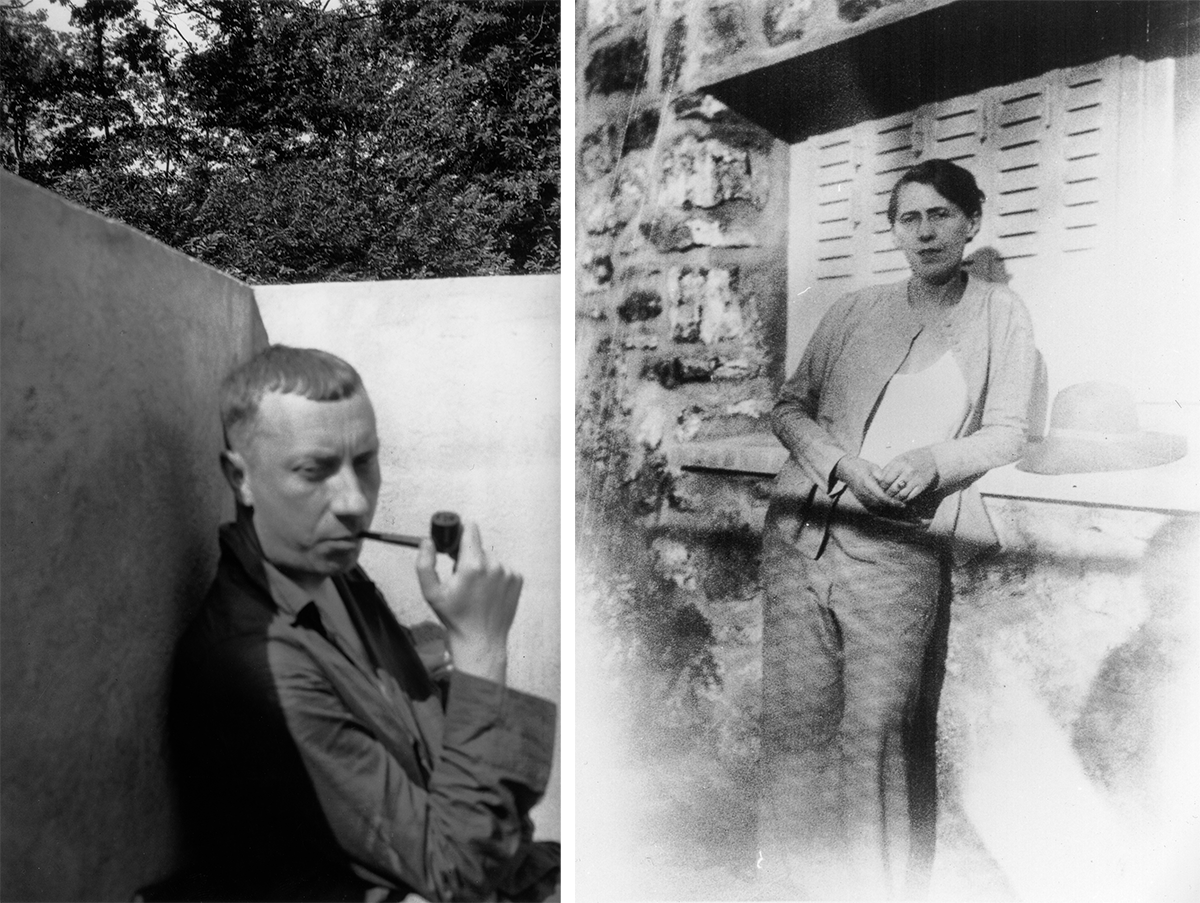 左:Jean Arp(ジャン・アルプ)。1930年、クラマールの自宅にてゾフィーが撮影。Photo Sophie Taeuber-Arp. Droits fondation arp 右:Sophie Taeuber-Arp(ゾフィー・トイバー=アルプ)。1938年。D.R.