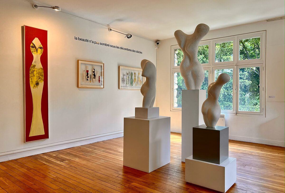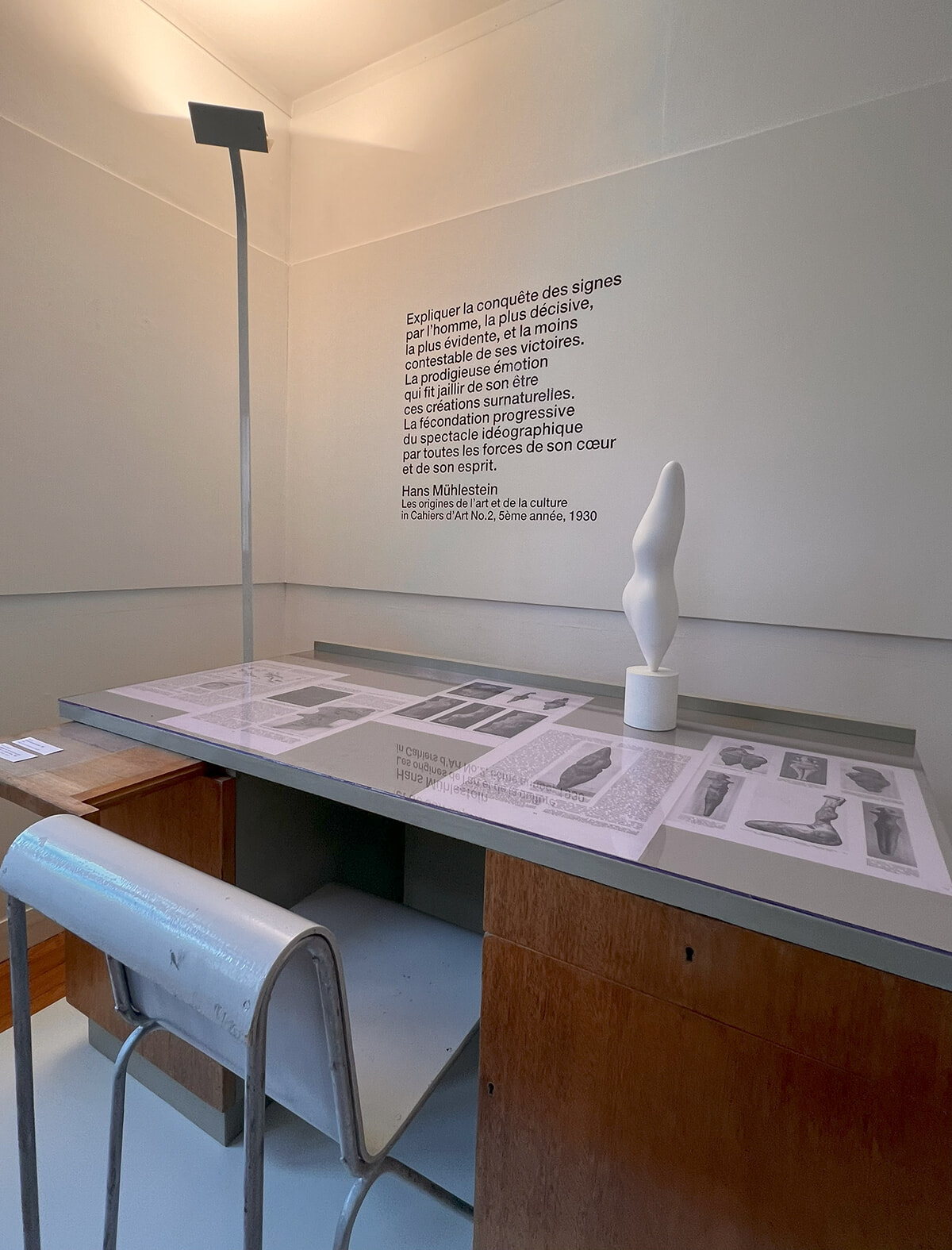 ゾフィーとジャンの暮らしと制作の場を見学。それに加えて、11月23日までは『arp mythique arp antique(神話のアルプ、古代のアルプ)』展を鑑賞できる。1952年に出した『内なる言語』の中で、「神話に根ざさず、宇宙の深淵にも本質にも関与しない作品は亡霊に過ぎない」と語ったアルプ。この展覧会は神話と古代文明が彼に与えた影響にフォーカスを置いていて、建物の2階と3階で彫刻、絵画、写真など約50点の作品を展示している。