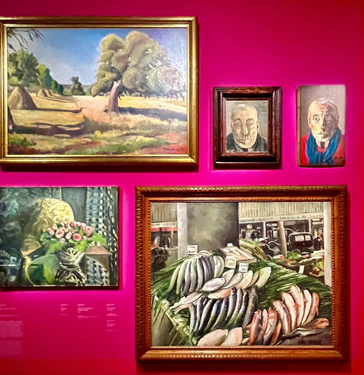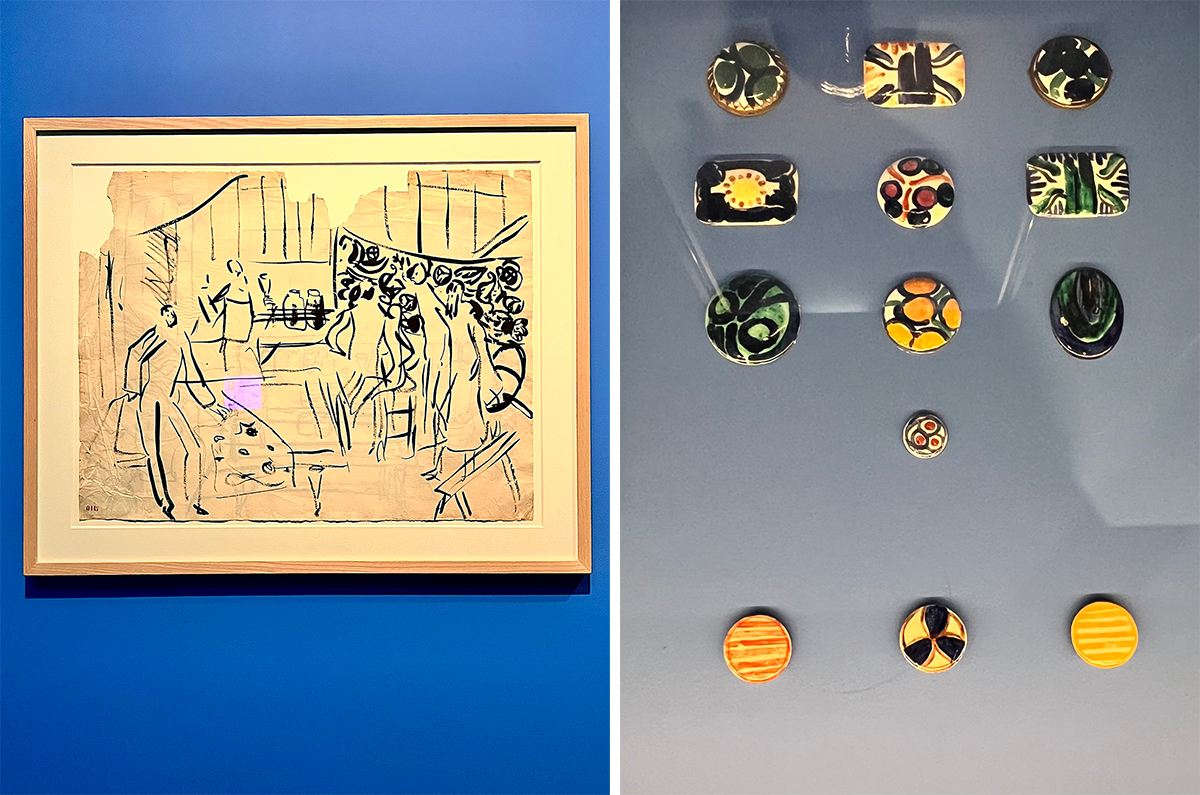 右:ラウル・デュフィ作『La petite usinse』(1911年)。ポワレのための仕事場をデュフィは”小さい工場”と呼んでいた。 左:ヴラマンクによる大胆な色彩とモチーフのボタン。photography: Mariko Omura