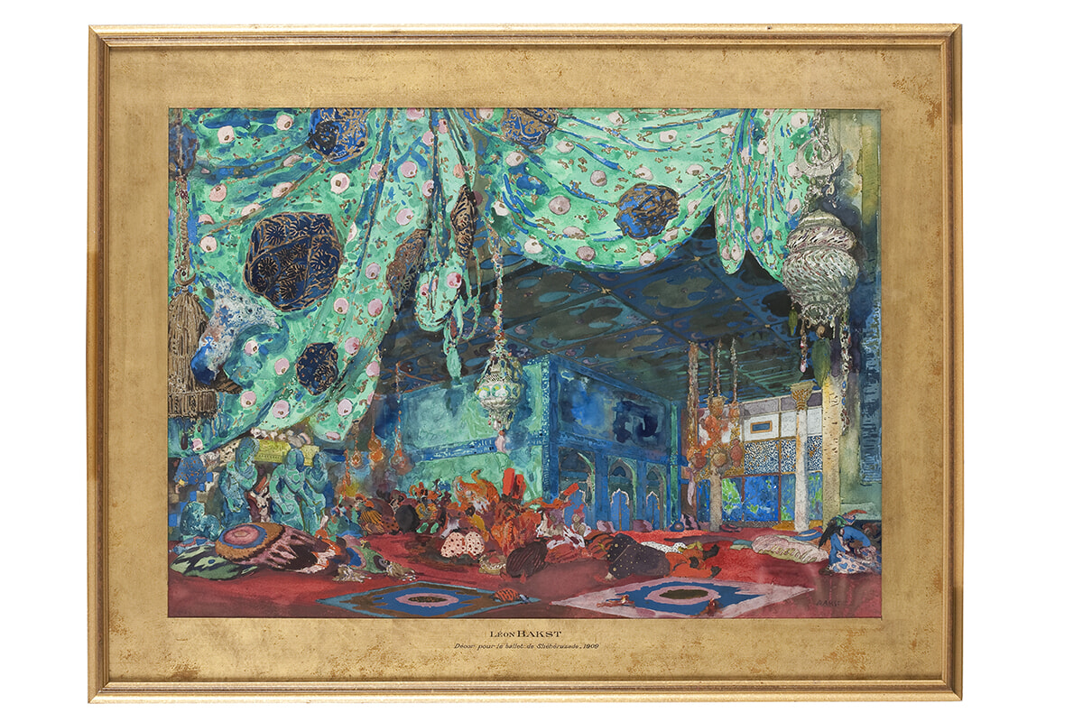 レオン・バクストによる『シェーラザード』の舞台装飾プロジェクト。1910年。© Les Arts Décoratifs