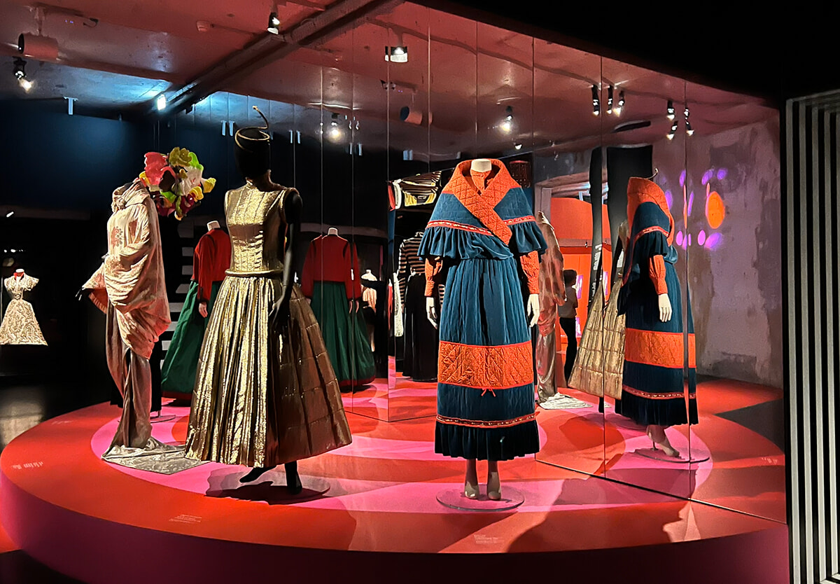 ジョン・ガリアーノによるディオール、高田健三によるKenzo、アズディーン・アライアによるアライアなど、ポワレのスタイルにインスパイアされた服を集めて。この最後のコーナーだけでなく、会場内にもコムデギャルソン、ドリス・ヴァン・ノッテン、カール・ラガーフェルドによるクロエの服が展示されている。photography: Mariko Omura