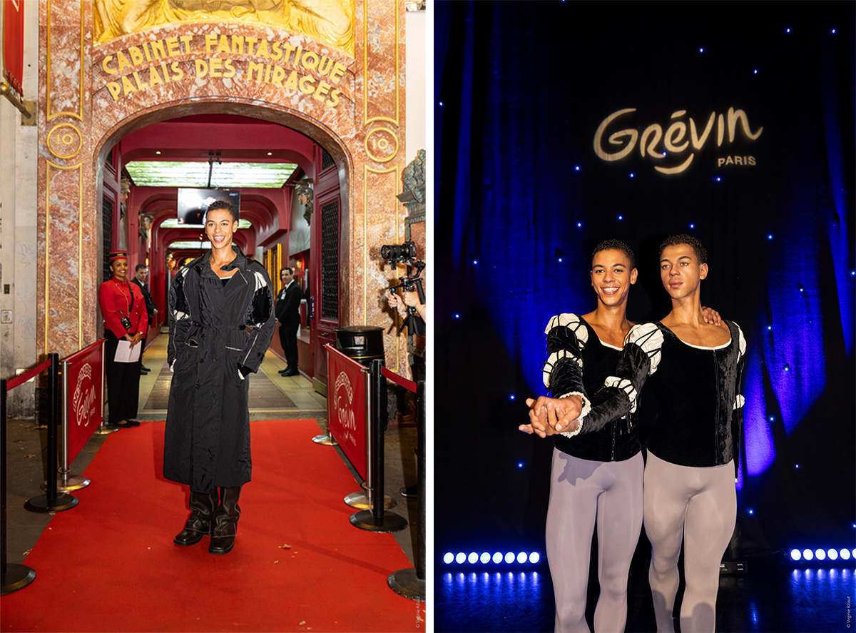 パリ・オペラ座で9月27日から公演が始まり、彼も主役アルブレヒトを踊る『ジゼル』の第2幕のコスチュームでポーズしている。その素晴らしい出来栄えに、ダンサー仲間やファミリー、関係者が集まった9月22日のお披露目パーティーで彼は蝋人形の自分とポーズして茶目っ気を発揮する満足ぶりだった。バレエ界からは過去に、セルジュ・リファール、ルドルフ・ヌレエフ、ミカエル・ドゥナール、パトリック・デュポン、ギレーヌ・テスマール、ミカエル・バリシニコフ、マリ=クロード・ピエトラガラ、ニコラ・ル・リッシュの蝋人形が作られているが現在は展示されておらず、250名のセレブリティの中でパリ・オペラ座バレエ団を代表するギヨーム。オペラ座バレエ団での活躍はもちろんだが、昨年のパリ・オリンピックの開幕セレモニーで踊ったり、南アフリカやスウェーデンのバレエ団でゲストとして創作に参加したりと国際的にも知られた存在である彼。アメリカではモダン・プリンス、バレエ界のニューアイドルと紹介されているそうだ。