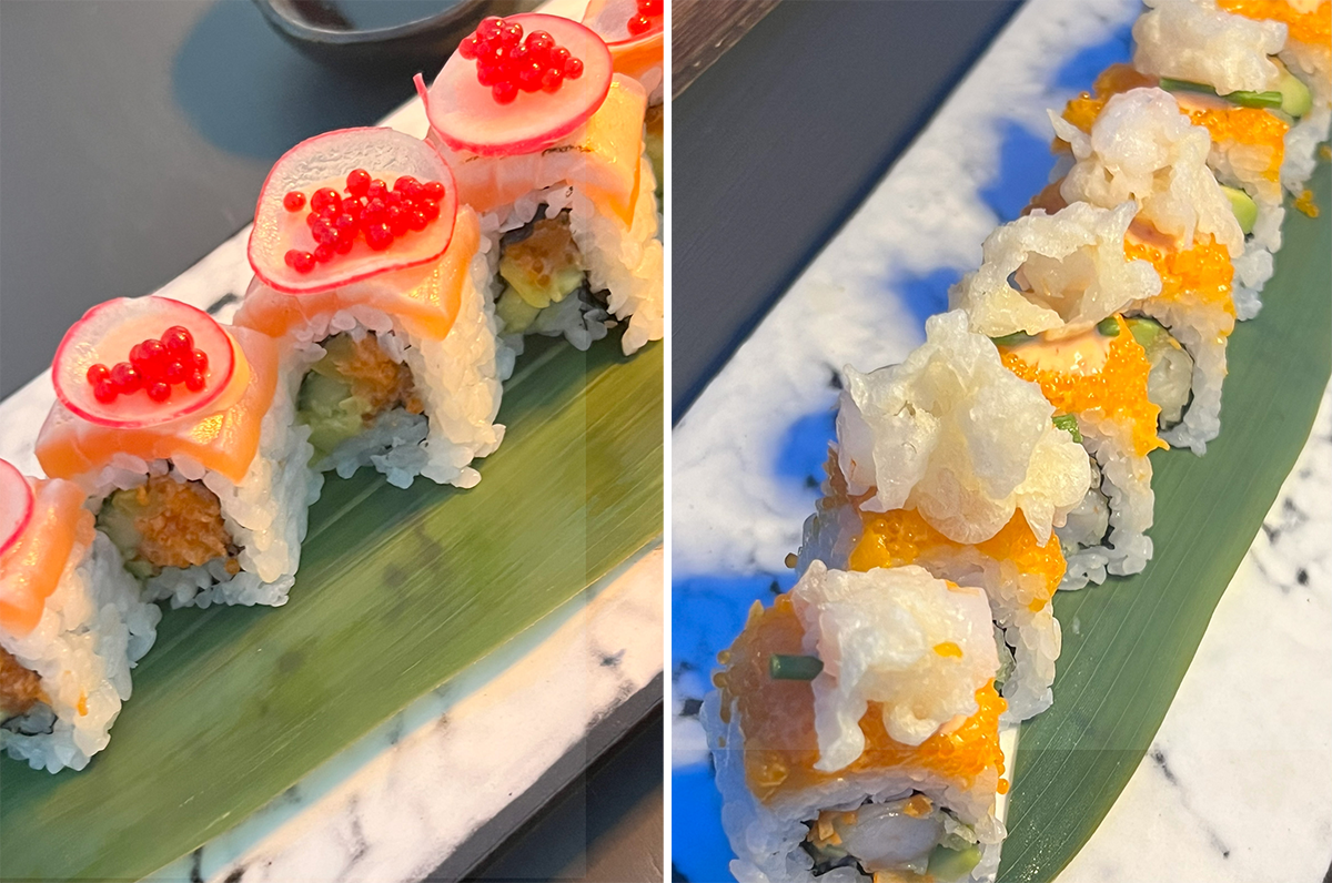 食感の楽しみもあり、色彩鮮やかな巻き寿司各種。メニューには握り寿司や刺身も。photography: Mariko Omura