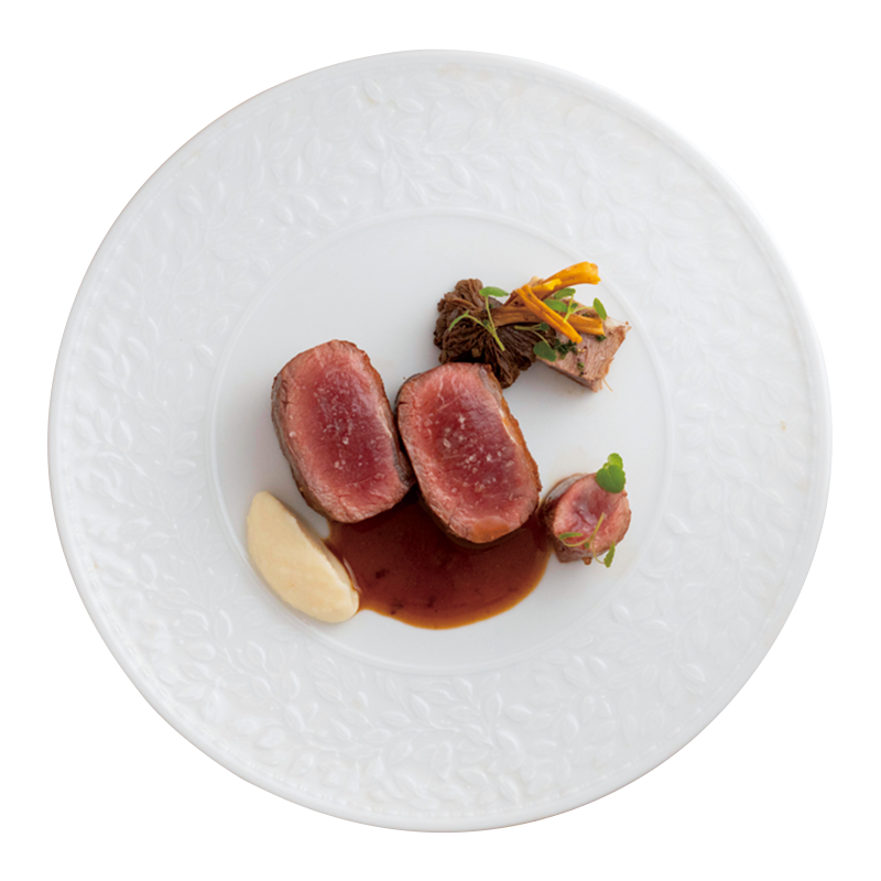 じっくり火入れした仔羊は、柔らかく、噛むたびにあふれる肉汁が豊潤。「Selle d’Agneau Rôti, Jus au Romarin, Purée de Céleri」28ユーロ