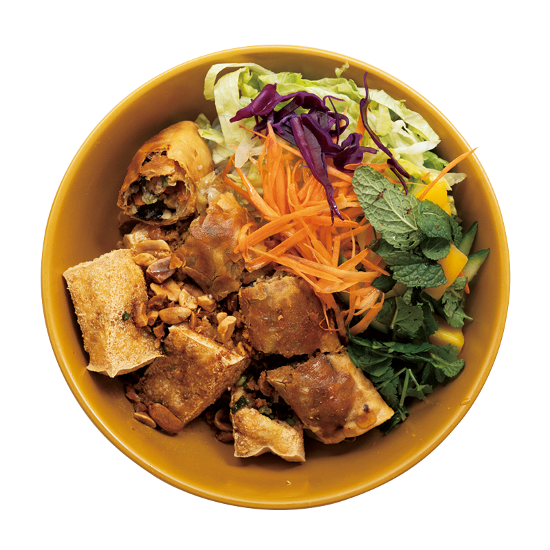 ハノイ出身のふたりが提案するベトナム北部の料理。2種のフォー、3種のボブン(米粉の麺料理)、前菜のネム(揚げ春巻き)とメニューは少数精鋭。最高級のベトナム産の米やニョクマム、フランスのオーガニック野菜、牛の骨や骨髄を24時間煮込んで作るフォーのスープなど、食材や調理法の徹底したこだわりがおいしさの理由。パリパリの皮に包まれたネムは具材たっぷり、旨味もぎゅっと詰まっている。