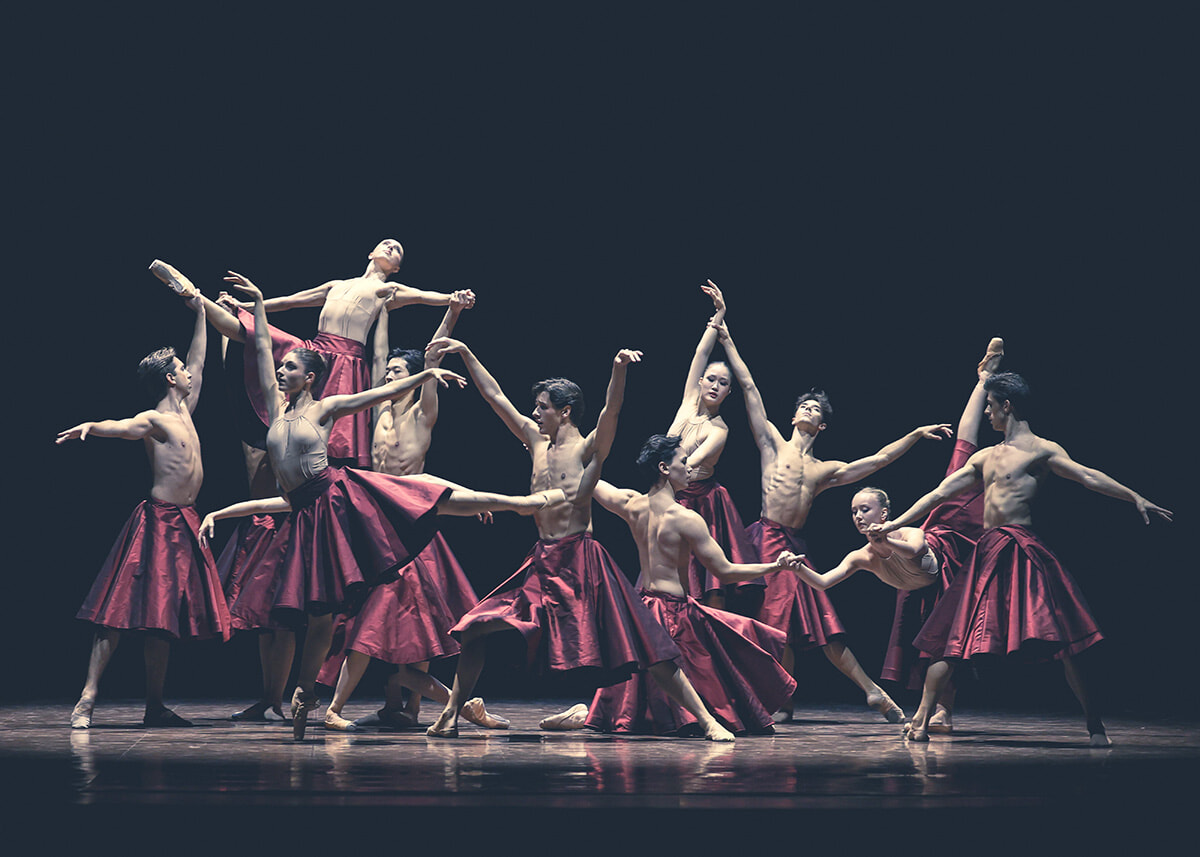花が開き、枯れて、再び開き……と、シューベルトの曲に乗せて赤いバラが舞うように。パ・ド・ドゥでは女性ダンサーはポワントで踊った。©Maria-Helena Buckley/ OnP