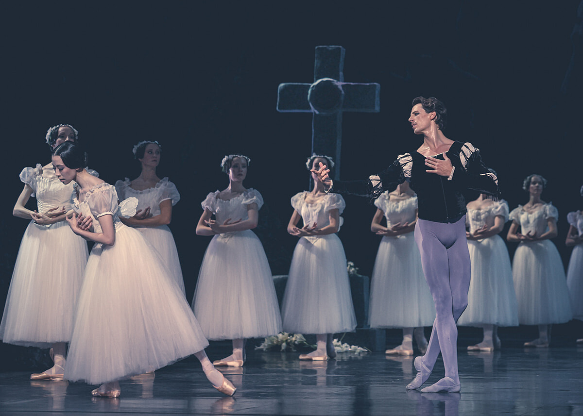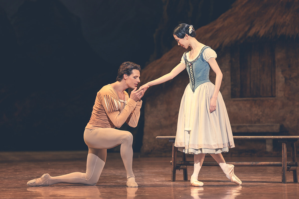 『ジゼル』第1幕より。村娘ジゼルはパク・セウン、高貴な身分を隠してジゼルに恋する若者アルブレヒトはジェルマン・ルーヴェという配役で踊られた。©Maria-Helena Buckley/ OnP