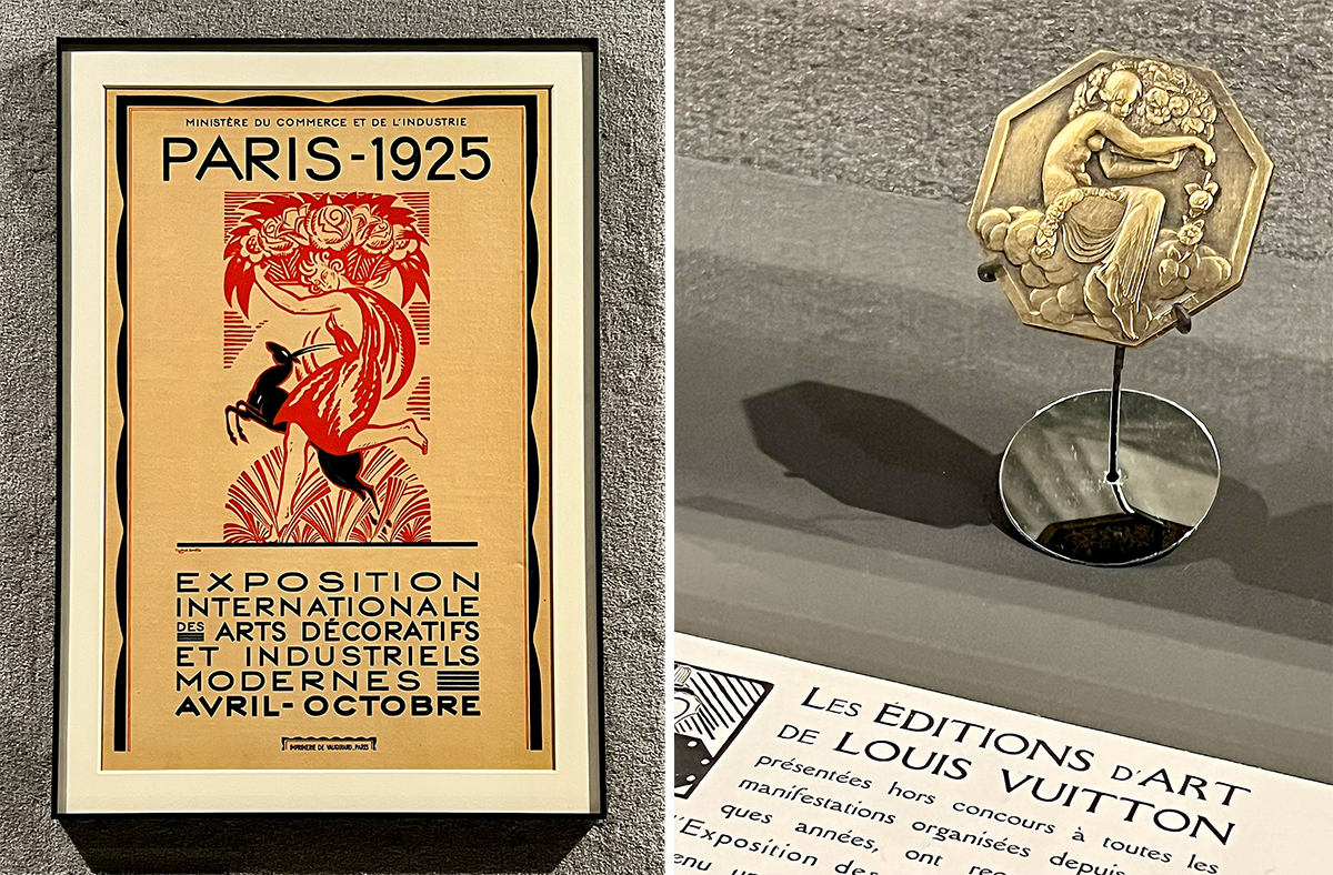 左:『現代装飾美術・産業美術国際博覧会』のポスター。 右:1925年アール・デコ博の記念メダル。photography: Mariko Omura