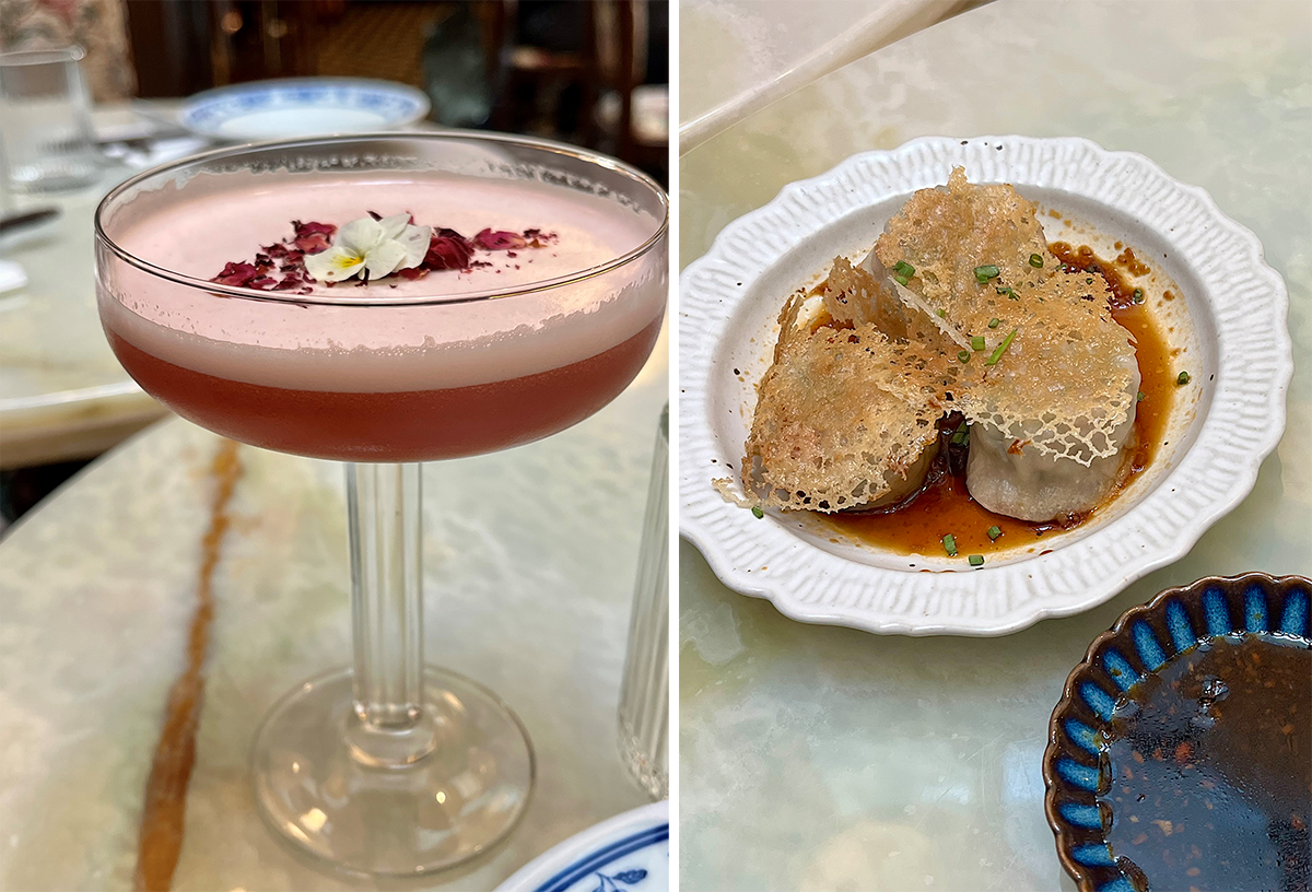 平日のランチタイムでもオリジナル・カクテルや人気の前菜である羽を広げたラヴォオレ・ドレを味わえる。北京ダックは夜のメニューに。photography: Mariko Omura