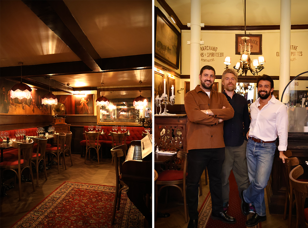 左:入り口。モンマルトルの丘の麓ゆえ店のある通りは坂道だ。 右:店内に入るや、19世紀末にタイムスリップ! photography: @sam.moreel