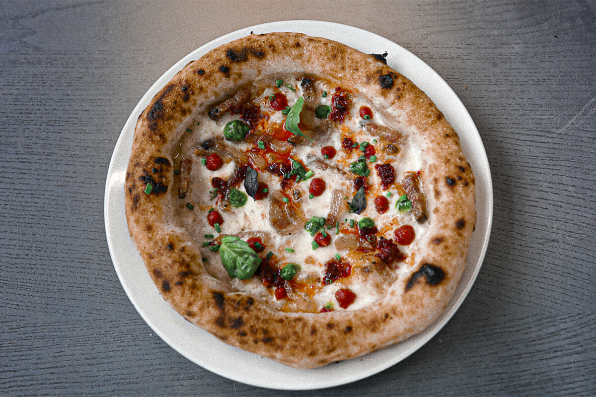 ヴィクトール・ルグラン(@vico.s_dough)を新たにシェフに迎えたカフェでは、ランチにピザが楽しめる。シェフはフォーク&ナイフではなく手で味わうことを提案。photography: le19M×Bastienne