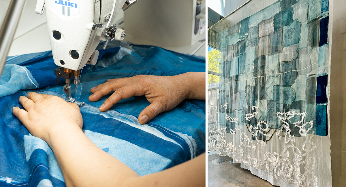 Emeline Amétis×Paloma『Les Derniers Atlantes』。パロマは布で3層からなるAtlantideの地図を製作。photography:(左)©le19M-Ismaël Bazri、(右)Mariko Omura