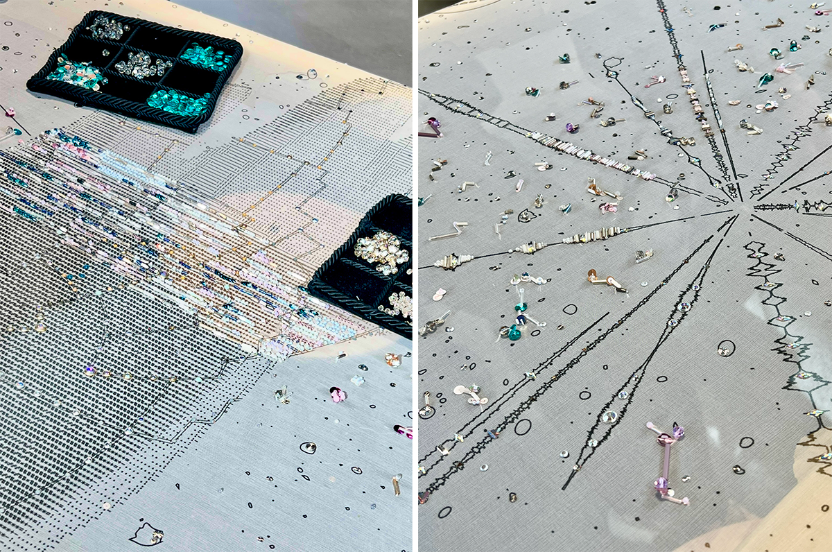 展覧会の最後にはギャラリー訪問者の誰でも参加できるワークショップが設けられている。手に針を持って、刺繍技術の発見をこの機会に! photography: Mariko Omura