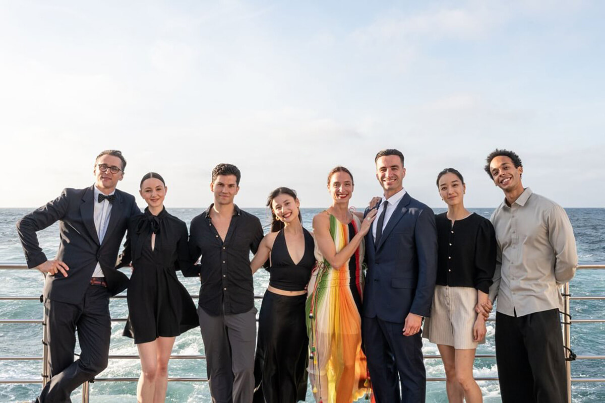 2025年のクルーズ参加ダンサーたち。左2人目からローデリンヌ・ショール、マニュエル・ガリド、アリシア・ヒディンガ、ドロテ・ジルベール、セバスチャン・ベルトー、カン・ホヒュン・カン、イザック・ロペス=ゴメス。インスタグラム(@laudeline.schor)より。