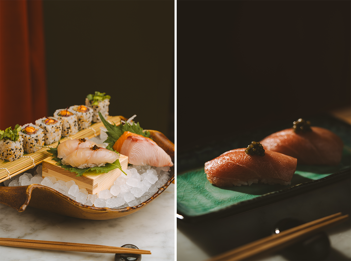 メニューを開いてみると、片側はマキ、刺身、握り。もう片側はスナック、シェア料理、サイドとなっている。モリシャス島出身のシェフ、ルーディ・ペターソンは味噌、柚子胡椒、シソ、ゴマなど日本の食材を駆使し、オリジナルの和食をクリエイト。素材は厳選され、新鮮である。イベリコ豚は柚子胡椒とトリュフソースで、子羊の炭火焼はゆず唐辛子で……アラカルト・メニューのメインにはなかなか個性的な料理が並んでいる。ヴェスペールでは誰もが味覚の旅を体験できそうだ。