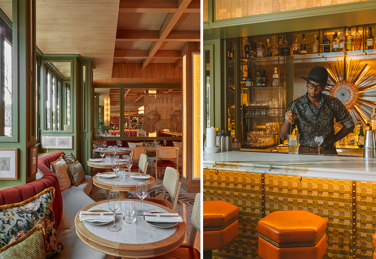 いまのパリで欠かせないカクテル・バーも備えたレストラン。そして毎週第一水曜日には占い師がいて無料で見てくれる……というように、単に食事を楽しむだけでなく、着飾って出かけ、盛り上がる時間を求めるパリっ子たちを喜ばせるのだ。インテリアは昔の和食店のように日本的装飾で満杯ということはない、知らずに前を通ればおしゃれなフレンチ・レストランと思ってしまうかもしれない。