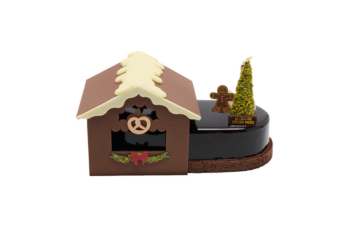 シェフ・パティシエのティボー・ルロワによるノエルのクリエイションはミルクチョコレートの山小屋だ。雪だるま、もみの木など冬の風物詩が配されている。6〜8名用と1人用の2バージョンがある。12月31日まで。