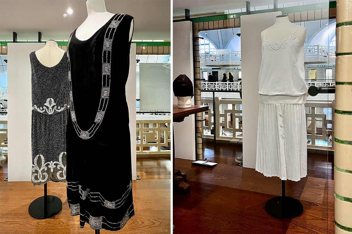 左:右はジャン・パトゥによるカクテルドレス。1925年。 右:テニスウエア。1930〜40年ごろ。photography: Mariko Omura