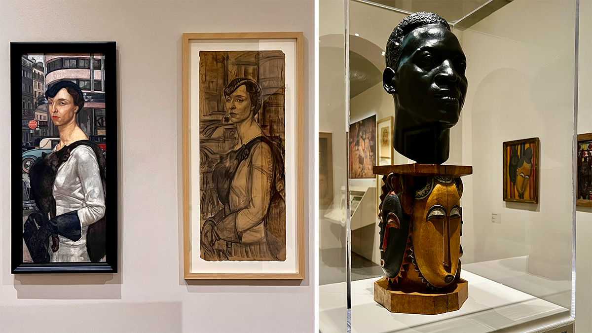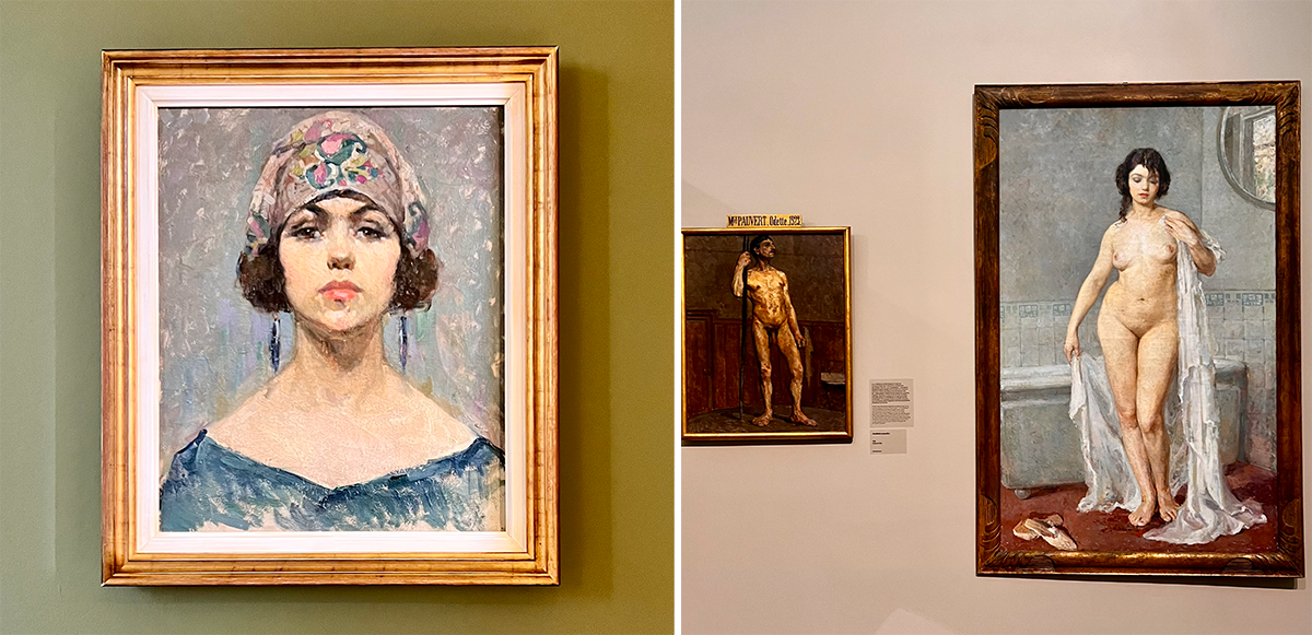 左:オデット・ポヴェール作『マタ・ハリと呼ばれる、女性の肖像画』(1921年)。 右:右の裸婦は1923年作『入浴後』。