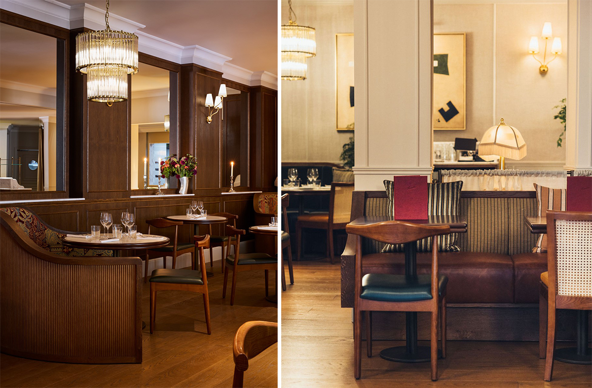 ホテルのレストラン、アネットはコーナーによって家具や装飾が異なる。ランチの後の静かな時間帯、ここでティータイムができるのは魅力的だ。photography: 左 ©Depasqualemaffini、右 ©Katedevine