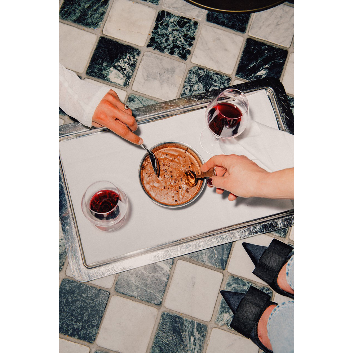 チョコレートムース(14ユーロ)とワインの組み合わせというティータイムも悪くない。photography: Beatrice Rigby