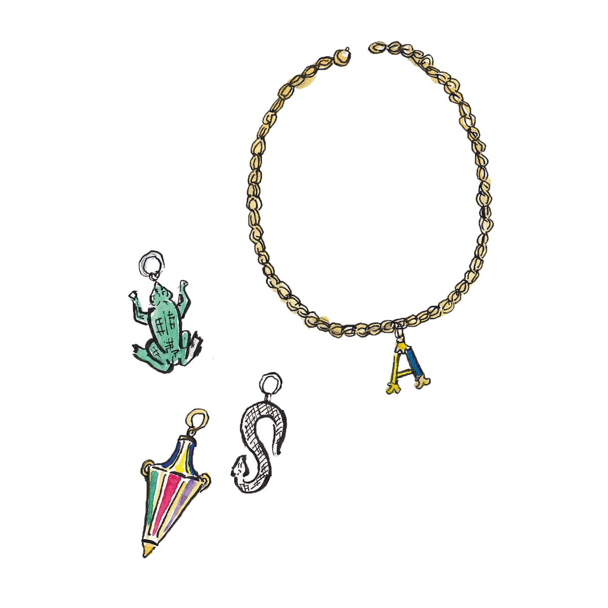 ネックレスは、太めのチェーンにこんなふうに色々なチャームを、気分に合わせて付け替えて楽しむのが好きです。ピアスもよくするけれど、リングはひとつだけしかしません。手が小さめなので、リングをたくさんつけると指が短く見える気がして。