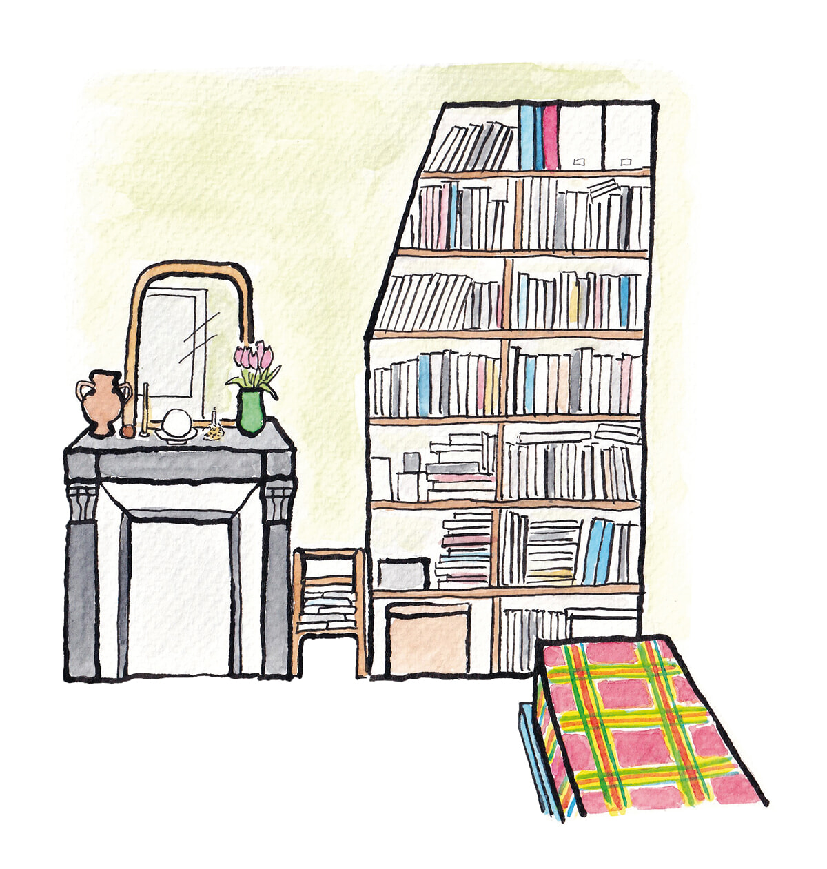 家族所有のこのアパルトマンは、田舎の家に引っ越した後も手放されることなく、かつてはアリスも週末を過ごす「第二の我が家」として親しんできた場所。両親がインテリアを頻繁に変えるタイプではなかったこともあり、少し古びた壁のペンキや年代物の家具などがそのまま残り、家族で過ごした日々の記憶が積み重ねられています。蚤の市や骨董市巡りが好きなのも母譲りで、職人の手仕事を感じさせる掘り出し物を探します。また、「都会の中にある田舎」のようなインテリアを好む彼女にとって、欠かせないのがお花です。一輪で空間の雰囲気がガラッと変わるだけでなく、日の当たり方や置き場所によってさまざまな表情を見せる花を眺める時間が、日々の喜びになっています。