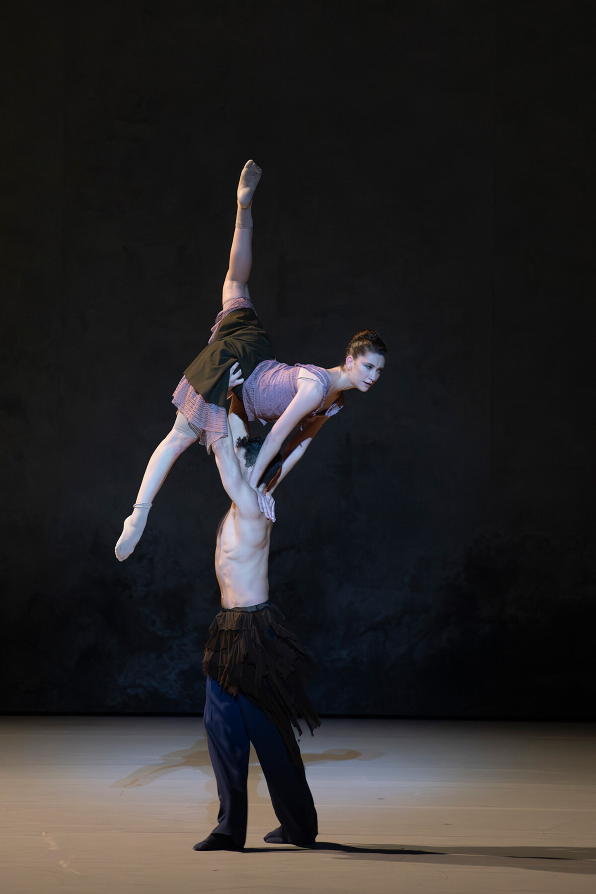 クレマンス・グロとジャケットを脱いだミカエル・ラフォン。クレマンスのスカートはダンス用にゴムで腿に留めるといった工夫がなされている。©Benoîte Fanton/ OnP