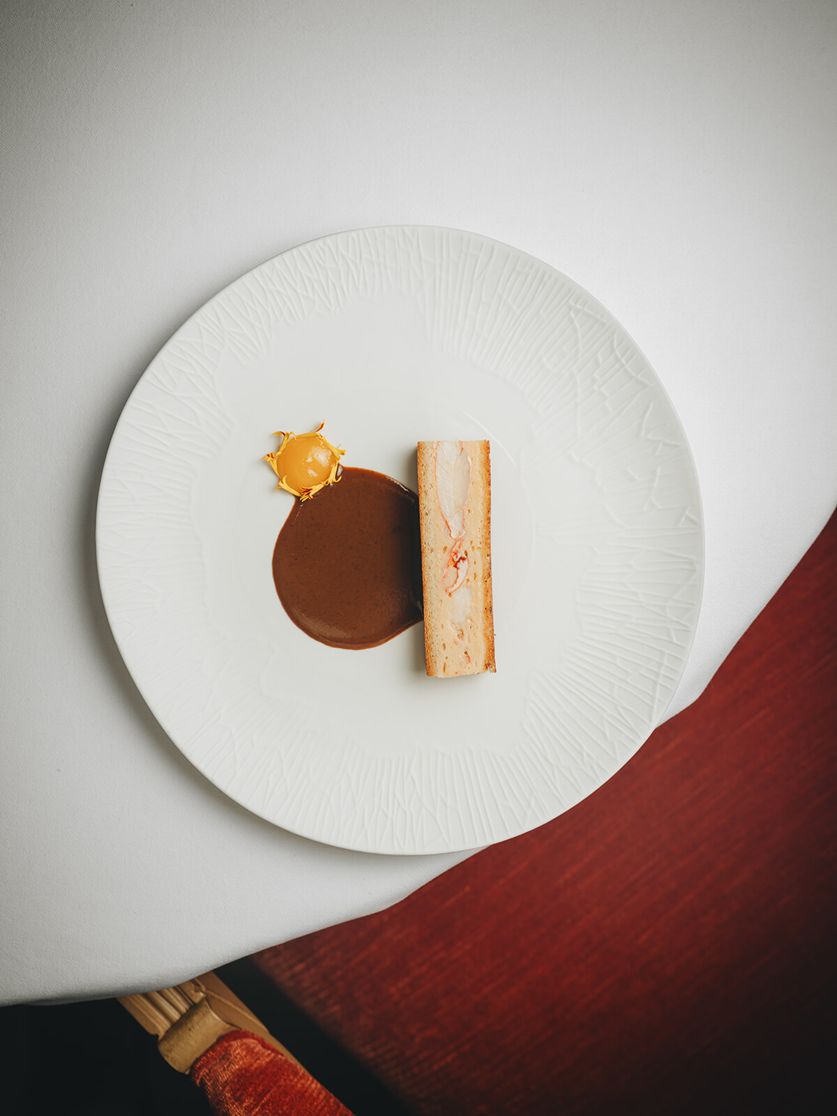 シーズンを問わずランチタイムの人気追加メニューは、ロブスター関節部分の身をパンと組み合わせたクロック。添えられたロブスターのビスクのこってり感はオレンジの酸味で優しい味わいに。©ilyafoodstories