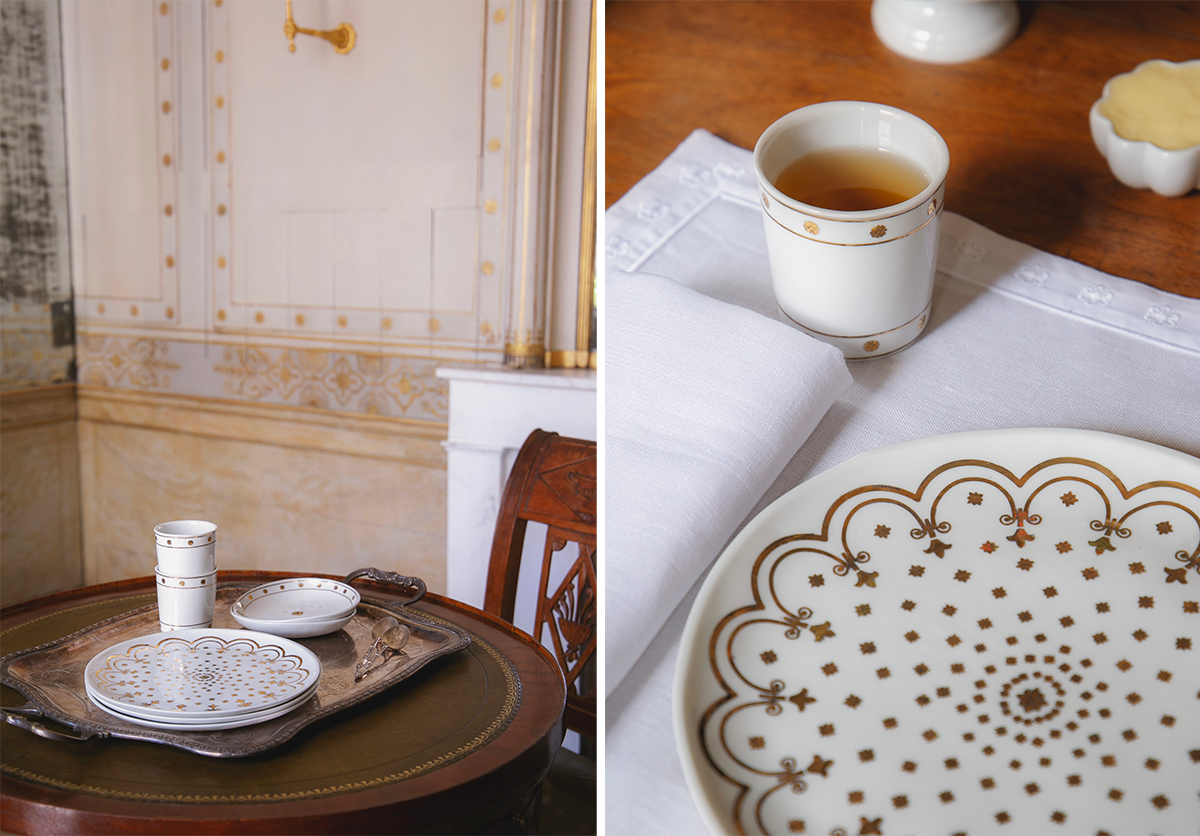 Bourrienne Paris X & Alix D.Reynisの限定コレクションより。プレートはバスルームの天井のロザスをそのままモチーフにしている。