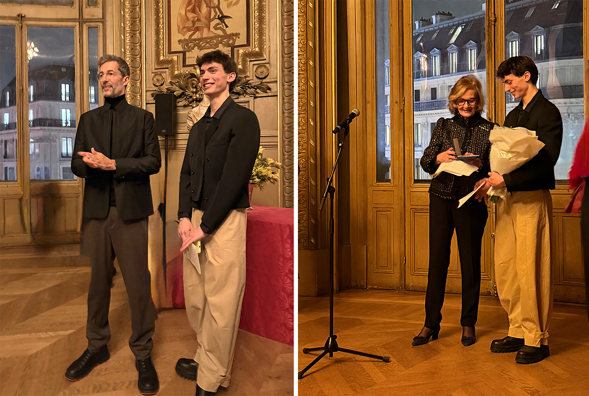 オペラ・ガルニエのロトンド・デュ・グラシエにてカルポー・ダンス賞の授賞式が1月27日に開催された。第43回に選ばれたのはスジェのロレンツォ・レッリ。これは24歳以下の将来有望なコール・ド・バレエのダンサーに贈られる賞である。セレモニーではセルクル・カルポーのプレジデントであるカトリーヌ・ドゥ・ピモドンからロレンツォに、オペラ座の正面でおなじみのカルポーの彫刻『ダンス』を刻んだメダルと賞金が手渡された。