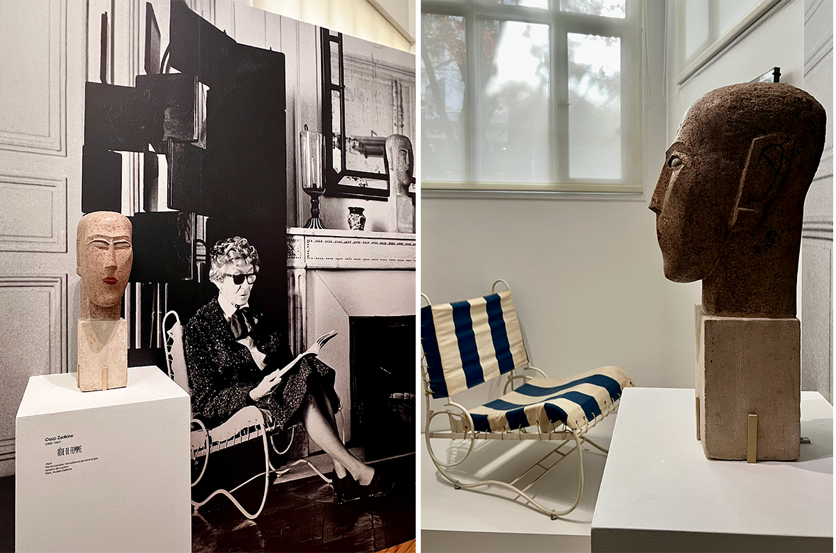 左側がマルク・デュ・ニコラ・デュ・プランティエがデザインした家具など。中央の像は彼の注文による『レベッカあるいは大きな水運び女』(1927年)。右がアンドレ・グローがデザインした家具とザッキンによるニコル・グルーの胸像。ニコルはアンドレの妻で、クチュリエであるポール・ポワレの妹だ。photography: @muséeZadkine-ParisMusée_NicolasBorel