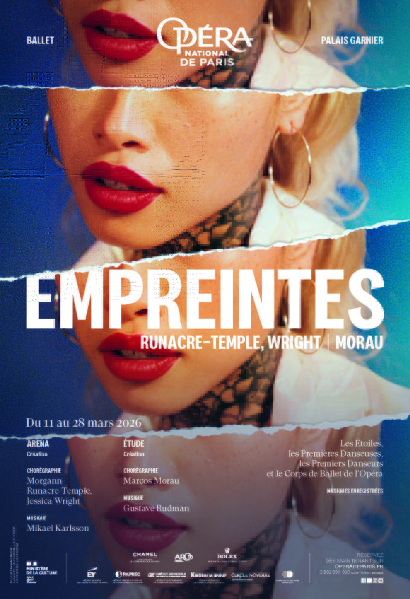 パリ・オペラ座の今シーズン2025/26のプログラムは、2022年12月に芸術監督に就任したジョゼ・マルティネスが初めて100パーセント手がけたものである。それまでは前芸術監督によって決定されていた作品を取り入れる必要があったからだ。このプログラムで彼はクラシック作品とコンテンポラリー作品の両方をバランスよく配し、さらに複数の作品で構成されるミックス・プログラムにこれまでのようにコレオグラファー名をタイトルにするのではなく、テーマをつけるという新しい試みを行った。『Racine』『Contrastes』、そして現在オペラ・ガルニエで3月28日まで開催されているのは”刻印”や”痕跡”を意味する『Empreintes』である。