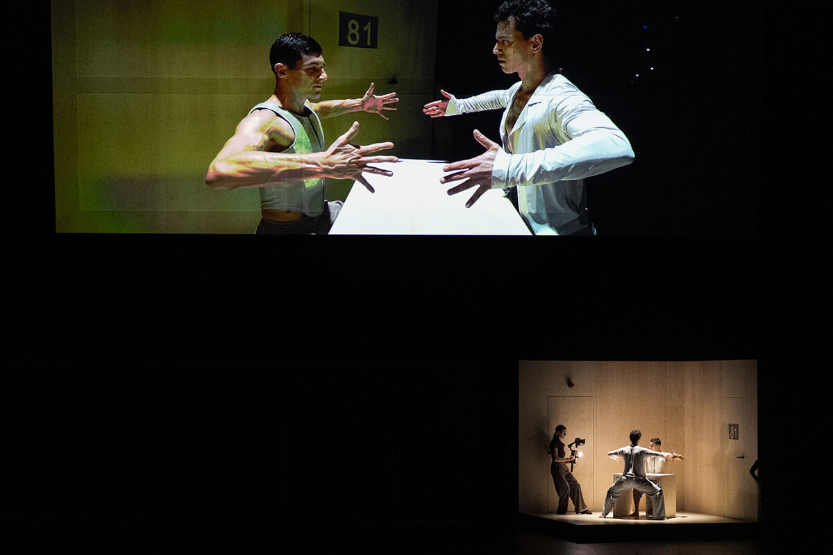 あるひとつのコミュニティ。その中で戦いがあり、誰が勝ち抜くか。ダンサーたちの衣装にはゼッケンがつけられている。その中のNo.81のルー・マルコー=ドゥルアールをステージ上、裏の小部屋、さらにガルニエ宮の大階段へとカメラが追いかけ、その映像がステージ上の巨大なスクリーンにライブで映し出されるという趣向だ。ステージ上のダンスを見るか、スクリーンの中のダンスを見るか……観客の眼の迷うところである。16名のダンサーに振り付けられた作品で、ソロを踊るのはルー、そしてナタン・ビソン。なお第2配役でのソロは女性にバトンタッチされ、キャロリーヌ・オスモンとイダ・ヴィイキンコスキーが踊る。音楽は『Play』のMickael Karlssonが担当。